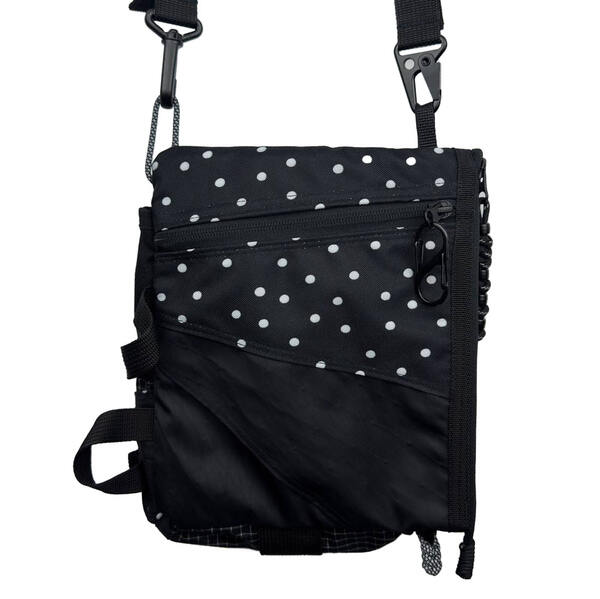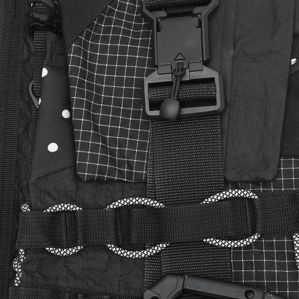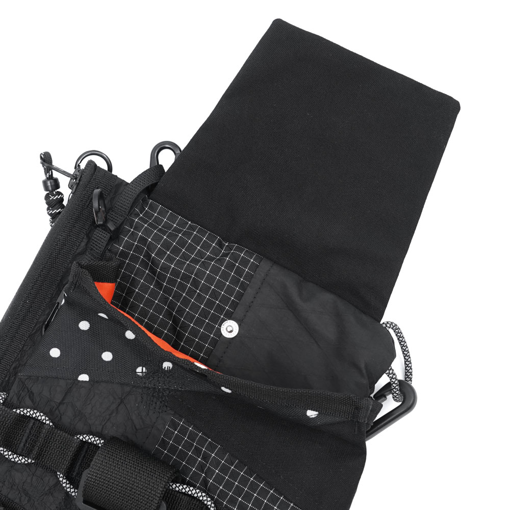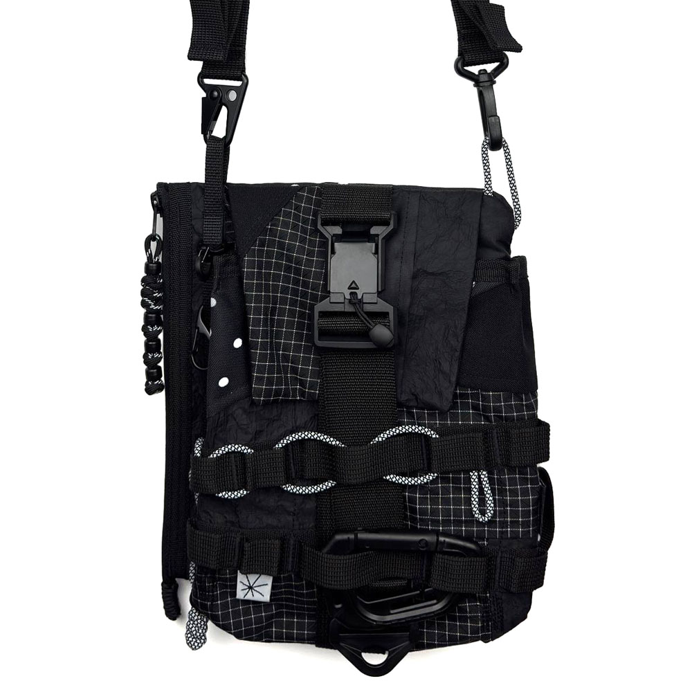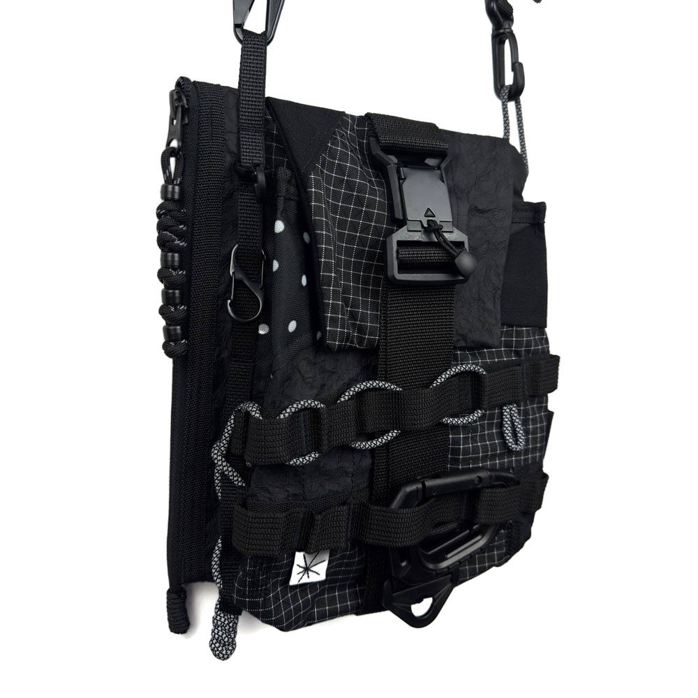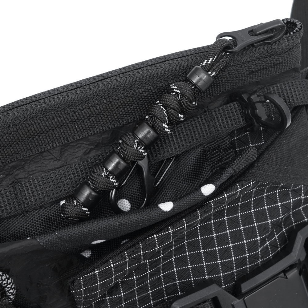 • На передней части сумки два ряда строп и карабины для обвесов